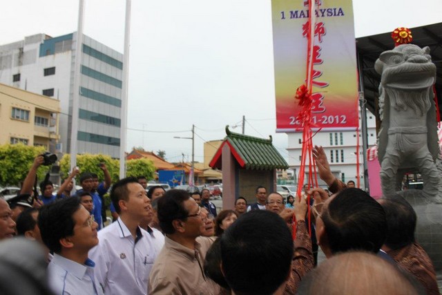 柔佛州州务大臣亚都甘尼为麻坡狮王之王地标主持开幕仪式